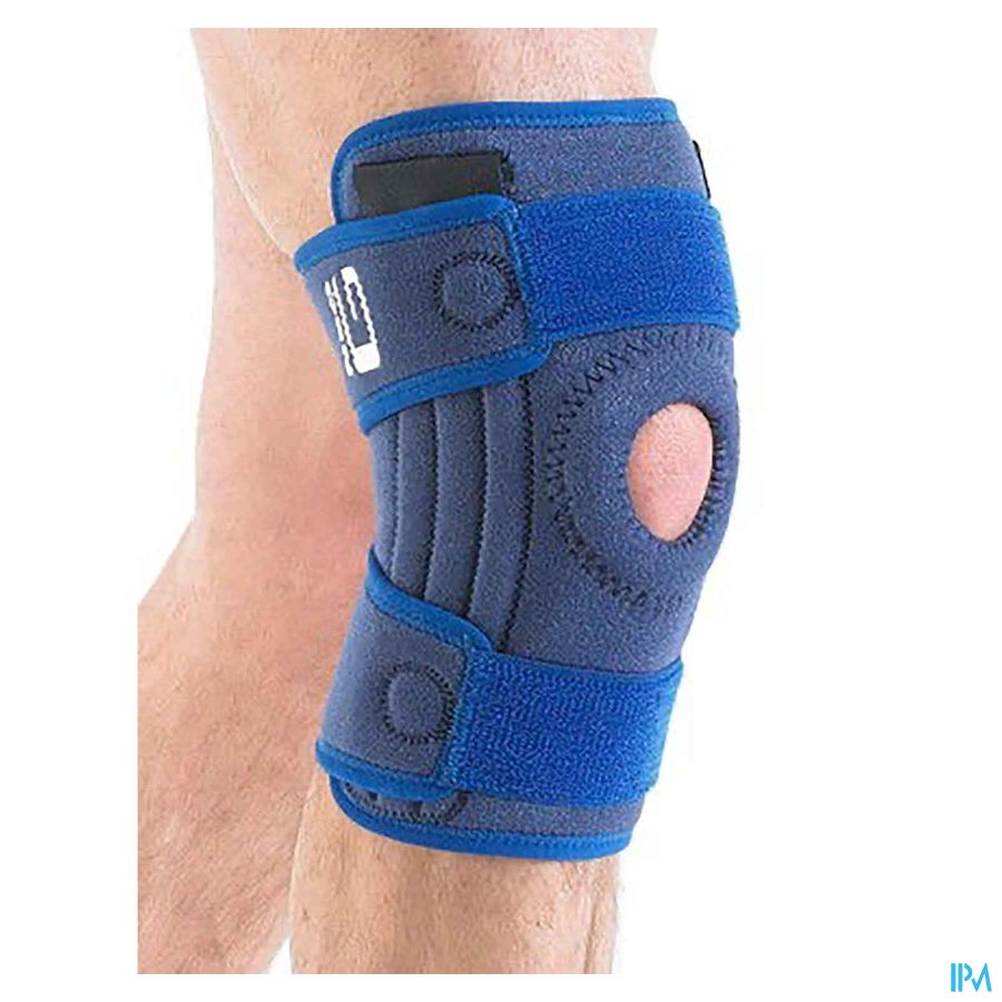Utilisé comme bandage de soutien stable lors de la surcharge du genou où la pression doit être évitée au niveau de la rotule. Un renforcement est prévu latéralement. Le bandage est placé au milieu, autour du genou puis on tire sur la bande du milieu. Ensuite, on fait la même chose avec la bande inférieure et la bande supérieure jusqu'à l'obtention d'un soutien confortable. Taille unique, utilisable bilatéralement. Circonférence : max. 56 cm (à mesurer 10 cm au-dessus de la genou).