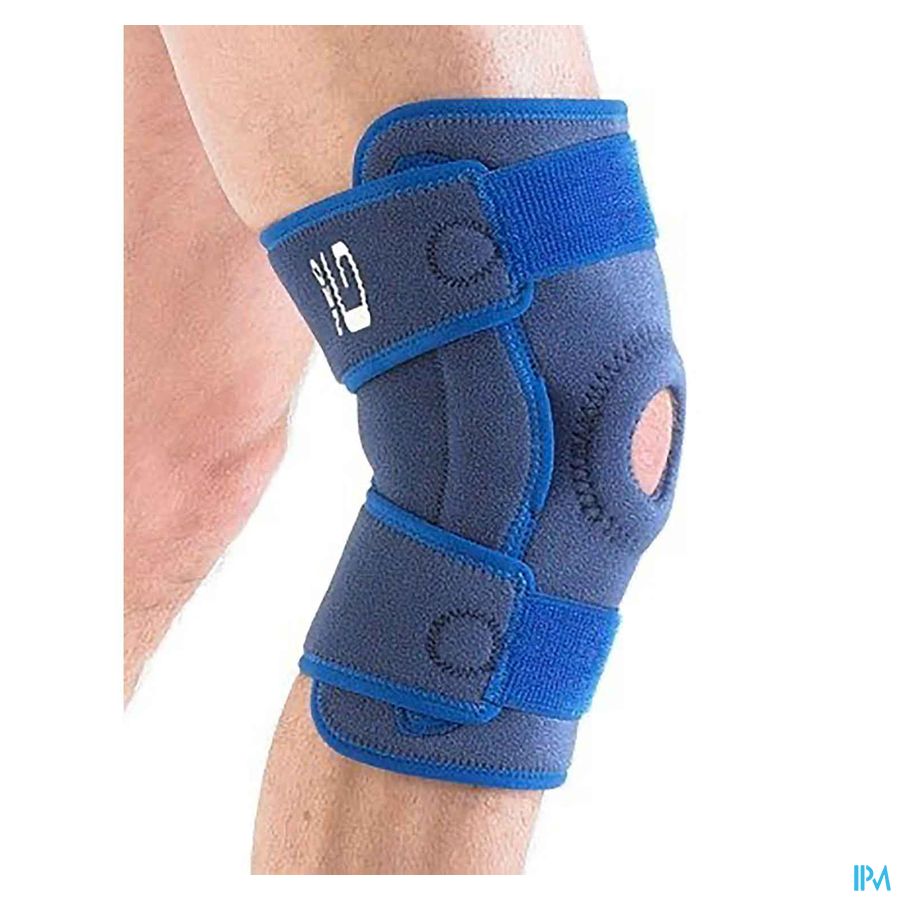 Utilisé comme bandage de soutien stable lors de la surcharge du genou où la pression doit être évitée au niveau de la rotule. Une articulation est prévue latéralement pour permettre la flexion avec une limitation de la rotation. Le bandage est placé au milieu, autour du genou puis on tire sur la bande du milieu. Ensuite, on fait la même chose avec la bande inférieure et la bande supérieure jusqu'à l'obtention d'un soutien confortable. Taille unique, utilisable bilatéralement. Circonférence : max. 56 cm (à mesurer 10 cm au-dessus de la genou).
